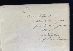 The inscription reads: “To Capt.n John Wootten, a token of kind regard from his passenger in 1837 & 8, W— Kopke, of Rio de Janeiro.”