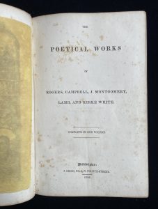 The Poetical Works of Rogers, Campbell, J. Montgomery, Lamb, and Kirke White. Complete in One Volume. Philadelphia: J. Grigg, No. 9, N. Fourth-Street. 1836.