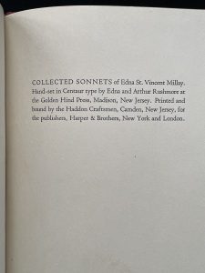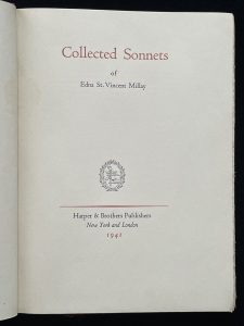 Collected Sonnets of Edna St. Vincent Millay, Harper & Brothers Publishers, New York and London, 1941, first edition.