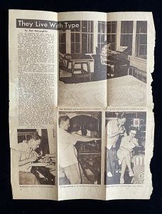 Tear sheet from a Newark Sunday Call article on Edna and Arthur Rushmore at the Golden Hind Press, Madison, the typesetters for the book.