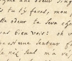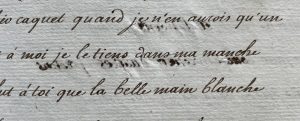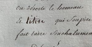 The handwriting in “voir” (first image, from a recognized handwriting by Grecourt) and “et vers” (second image) is highly consistent in style, slant, and letter formation. It is very likely that both were written by the same hand.