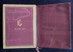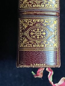 Édouard and Adolphe Lesort were prominent Parisian bookbinders active during the 19th century. Their workshop, E. & A. Lesort, was located at 3 Rue de Grenelle, near Saint-Germain-des-Prés in Paris. The Lesort firm specialized in crafting high-quality bindings, often for religious texts and special occasions such as weddings. They were known for their expertise in the Jansenist-style binding, characterized by its understated exterior and luxurious interior detailing.