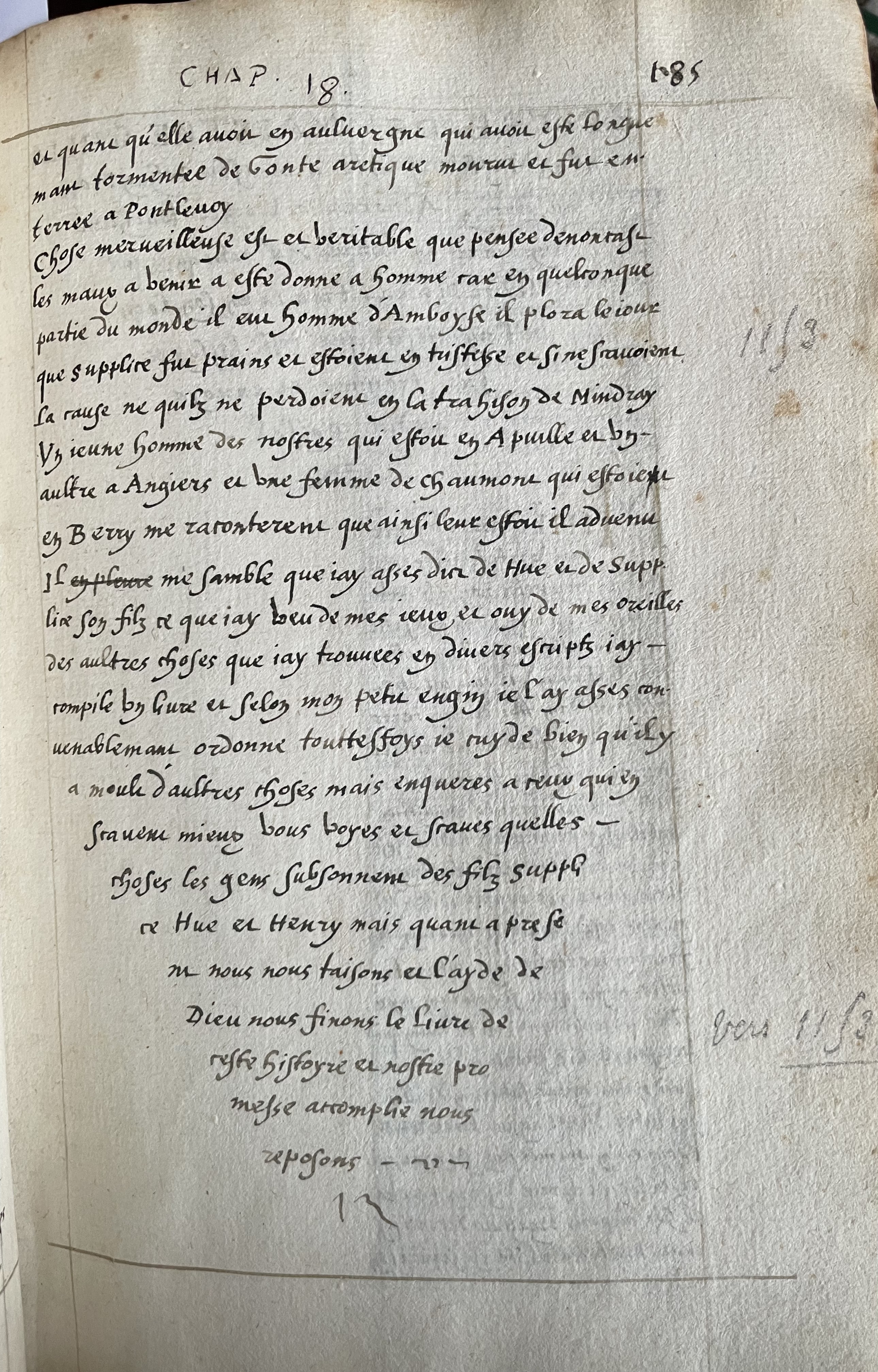 Published inHistoire écrite par frère Hervé de la Queue, Manuscript annotated by Pierre Moreau de Loches from Claude Aubron collection