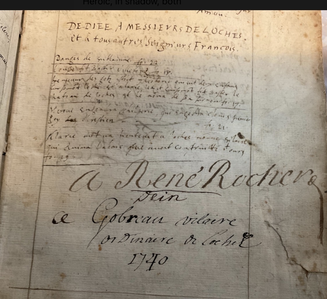 Published inHistoire écrite par frère Hervé de la Queue, Manuscript annotated by Pierre Moreau de Loches from Claude Aubron collection