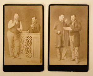 Photomontage cartes de visite served multiple purposes. Some were purely commercial novelties—humorous scenes or impossible situations designed to amuse and astonish. Others were theatrical in nature, showing actors in character or depicting dramatic narratives. Still others explored the medium’s potential for creating fantastical imagery, prefiguring the Surrealist movement by decades. These composite images were particularly popular as collectibles, offering something beyond the standard portrait that dominated the carte de visite market.
