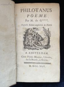 Philotanus. Poëme by M. de G***, Amsterdam, Chez Pierre Mortier, 1745.