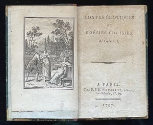 The 1797 Paris edition, Contes érotiques et poésies choisies de Grécourt, published by P.J.B. Nougaret, highlights the persistent demand for his erotic tales, particularly in the revolutionary era, when libertine literature found renewed interest.