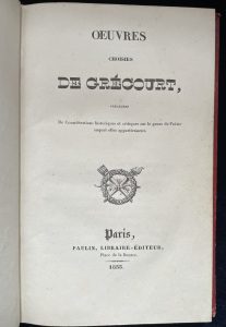 Œuvres choisies de Grécourt, précédées de Considérations historiques et critiques sur le genre de Poësie auquel elles appartiennent. Paris, Paulin, Libraire-Éditeur, Place de la Bourse, 1835.