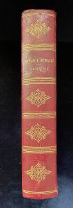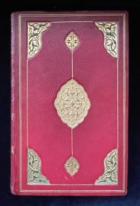 Full crimson morocco with mauresque designs blocked in gold over green and white leather onlays.