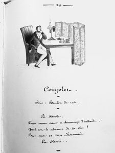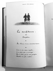 Following the prisoner writings, Durand inserted a substantial theatrical work that stands apart from the gravity of the first pages: a seventy-seven-page vaudeville titled “Le Bienfait du Divorce.” This play was written to amuse and distract his fellow prisoners, who performed or recited parts of it during their internment. It also reflects a strikingly modern subject. Divorce, introduced by the French Revolution in 1792, was a new legal right and had not existed under the Ancien Régime. Durand’s decision to create a comic work based on this radical reform—at a time when he and his companions were confined in enemy territory—underscores the mixture of resilience, wit, and political awareness that characterizes his work. The play is preceded by an “Avertissement,” followed by a dedicatory letter to his friend and fellow officer Laboissière, and then unfolds in songs, couplets, dialogues, and light theatrical scenes intended for performance among the prisoners.